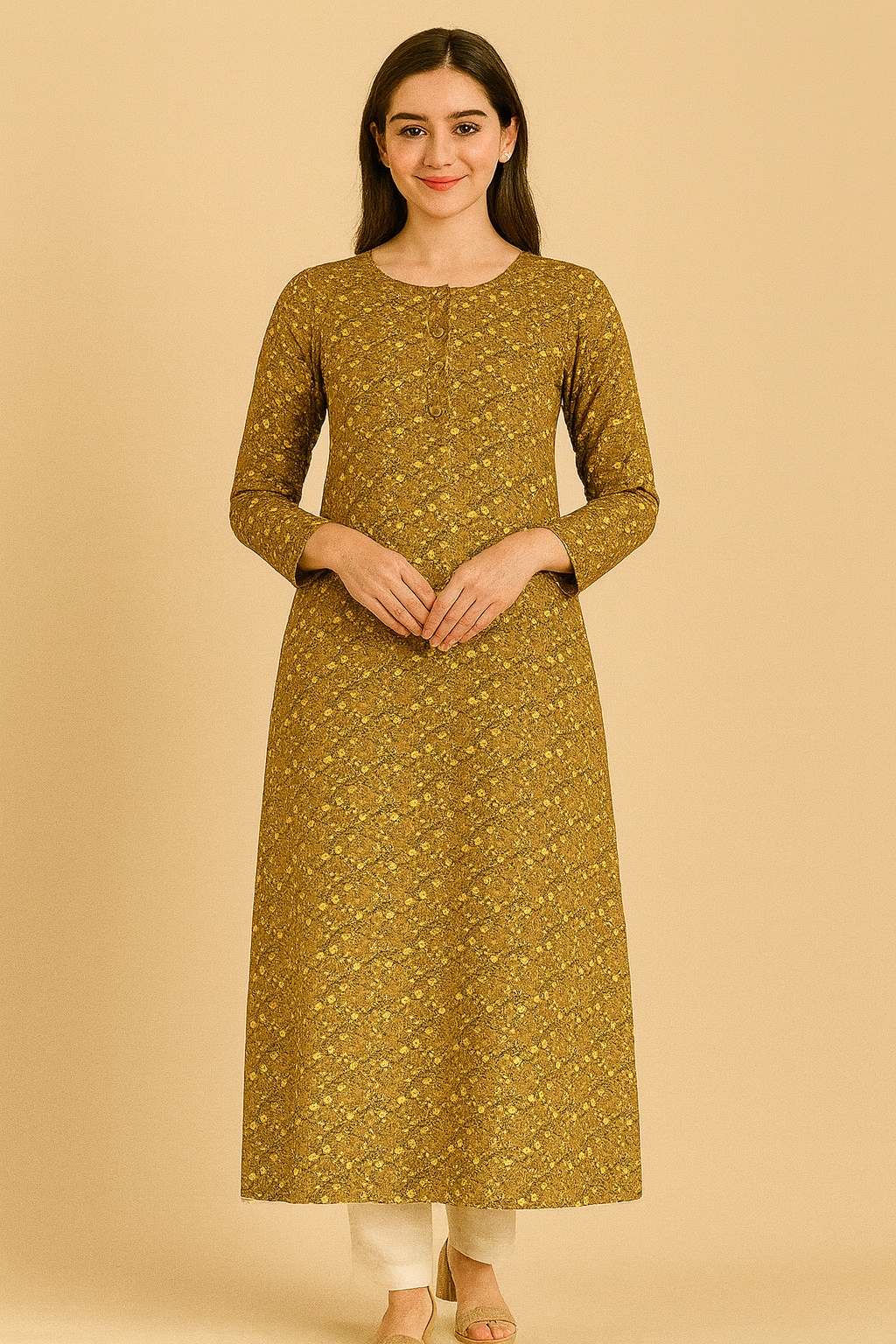 Design/Texture:. soft winter wear, Mustard Printed.